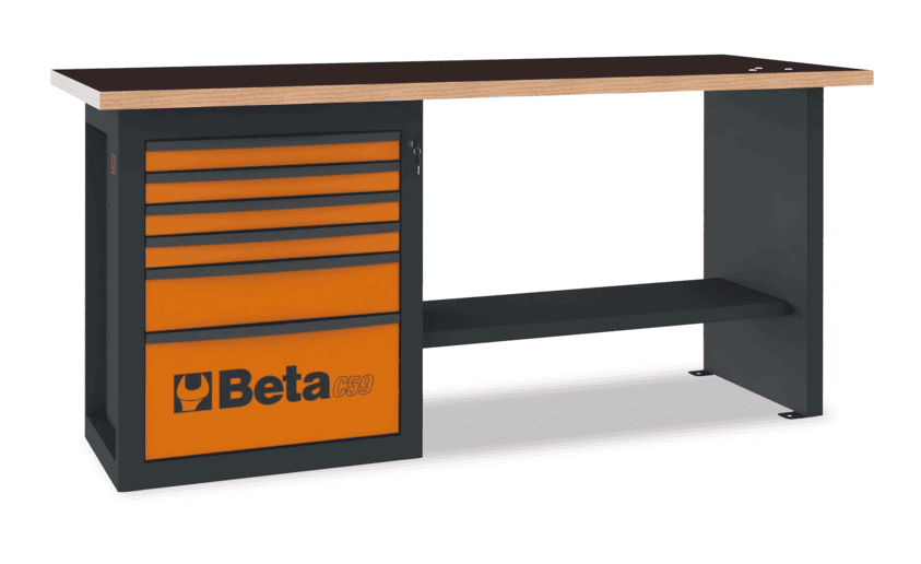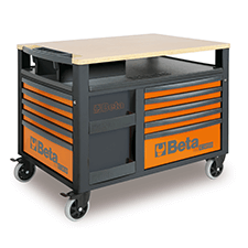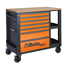 Mobile roller cab with 7 drawers, with wood worktop and anti-tilt system, long model